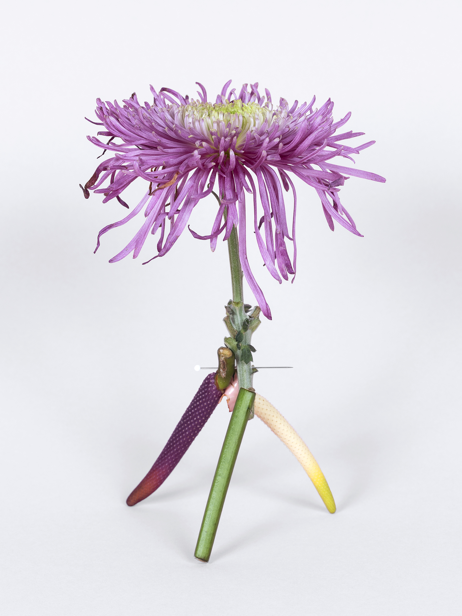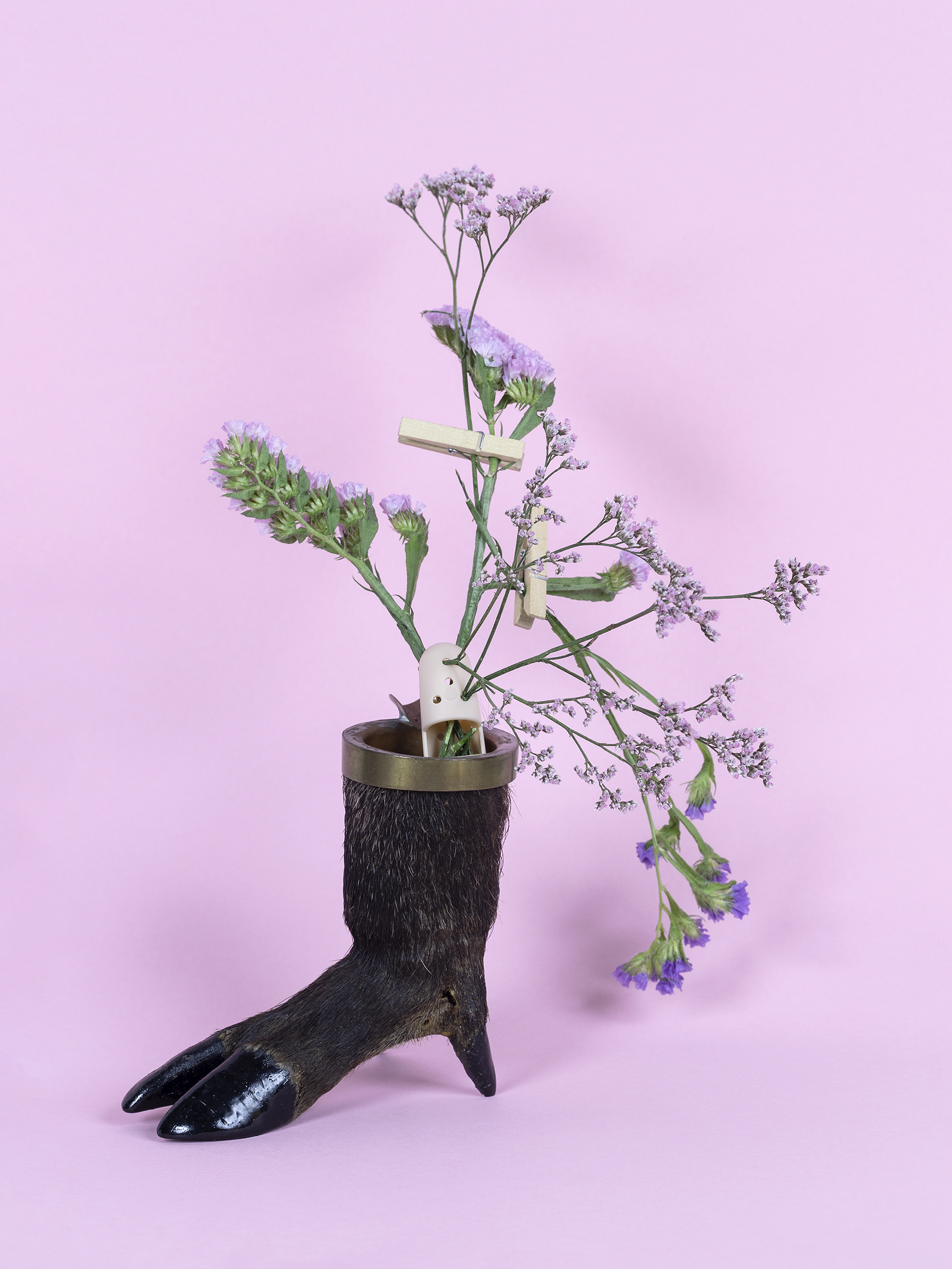 Like fragile memories, BROKEN FLOWERS combines flowers, plants, taxidermy, and medical objects. They are held together by needles, threads, and ribbons, exploring the tension between stability and vulnerability, between life and death.